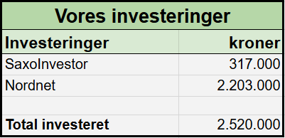 Vores samlede investeringers værdi: 2.759.857 kr.